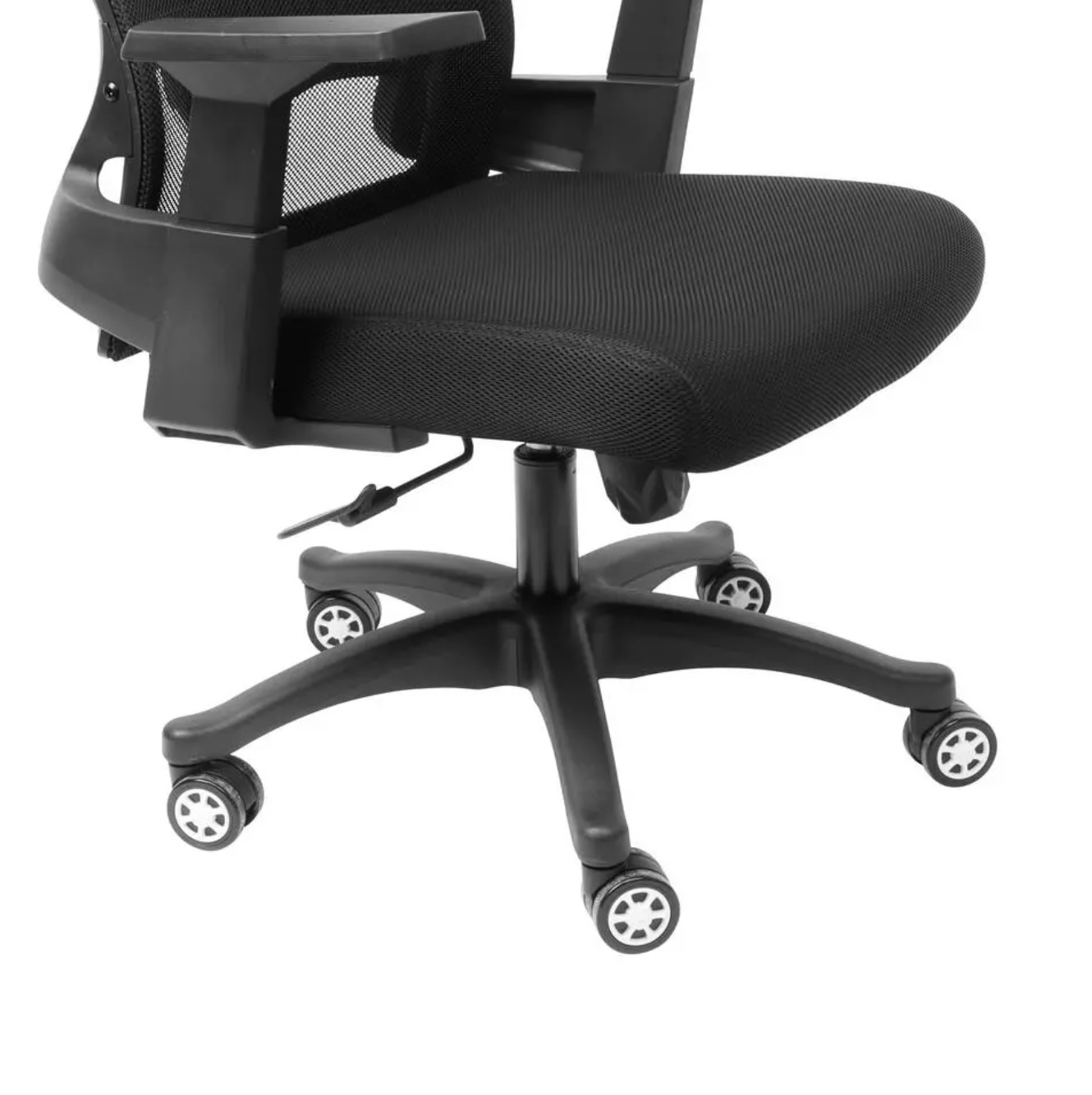 Dit is een hoogwaardige bureaustoel gemaakt van een mesh bekleding. De gazen bekleding is bovendien luchtdoorlatend, wat bij hoge temperaturen beslist van voordeel is. Het kunstof onderstel is zeer stabiel. De stoel staat stevig vast op vijf licht gangbare wielen. De zithoogte is zonder overgang verstelbaar.