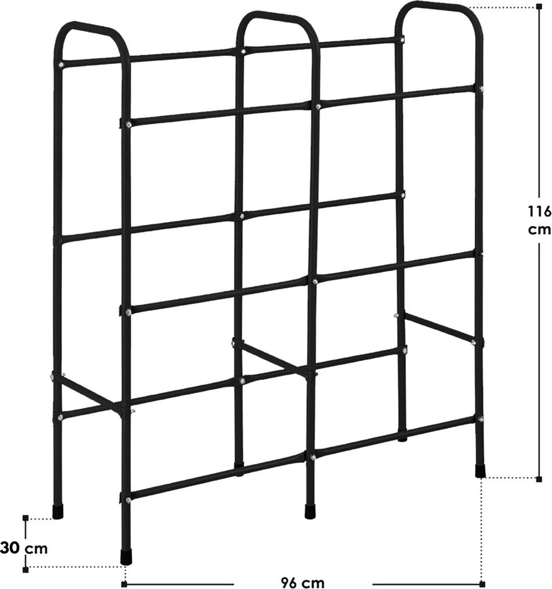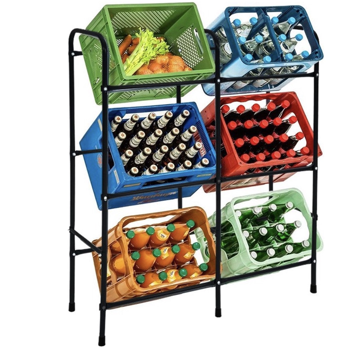 Het Xairo krattenrek is een stevige en stijlvolle oplossing voor wie zijn drankkratten, vouw- of eurodozen netjes wil opbergen. Het rek is gemaakt van gepoedercoat metaal in een zwarte uitvoering en biedt plaats aan zes standaardkratten. Dankzij het doordachte ontwerp haal je moeiteloos bij wat je nodig hebt, terwijl alles overzichtelijk blijft opgesteld.